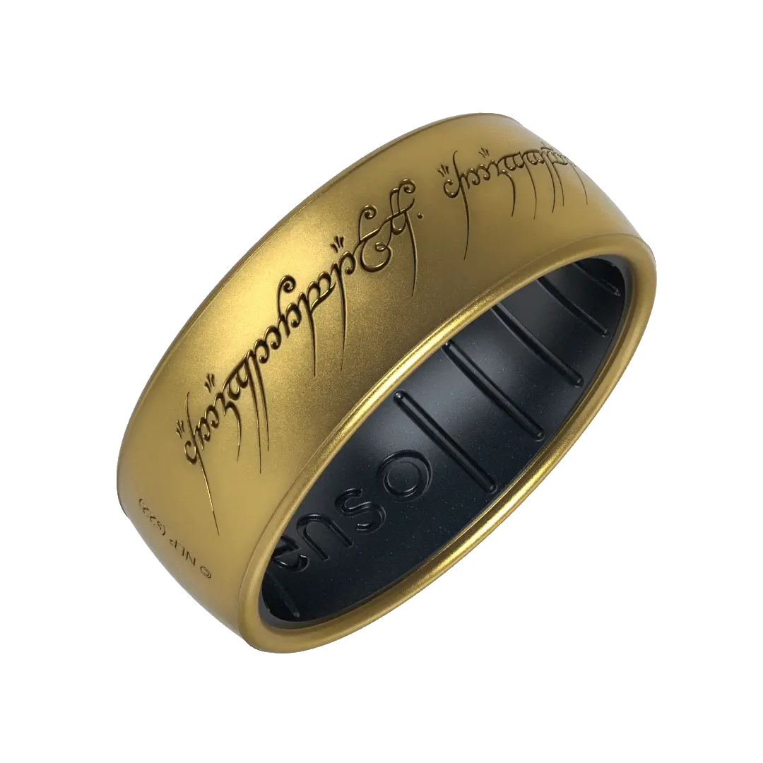 Enso Rings' latest addition, The Lord of the Rings Silicone Ring - The One Ring DualTone, is a game changer. Featuring a unique blend of precious materials, this ring provides a realistic metallic appearance and shine that surpasses all others, along with the unbeatable comfort and flexibility of the Enso brand. With this ring, sealing the deal has never been easier.